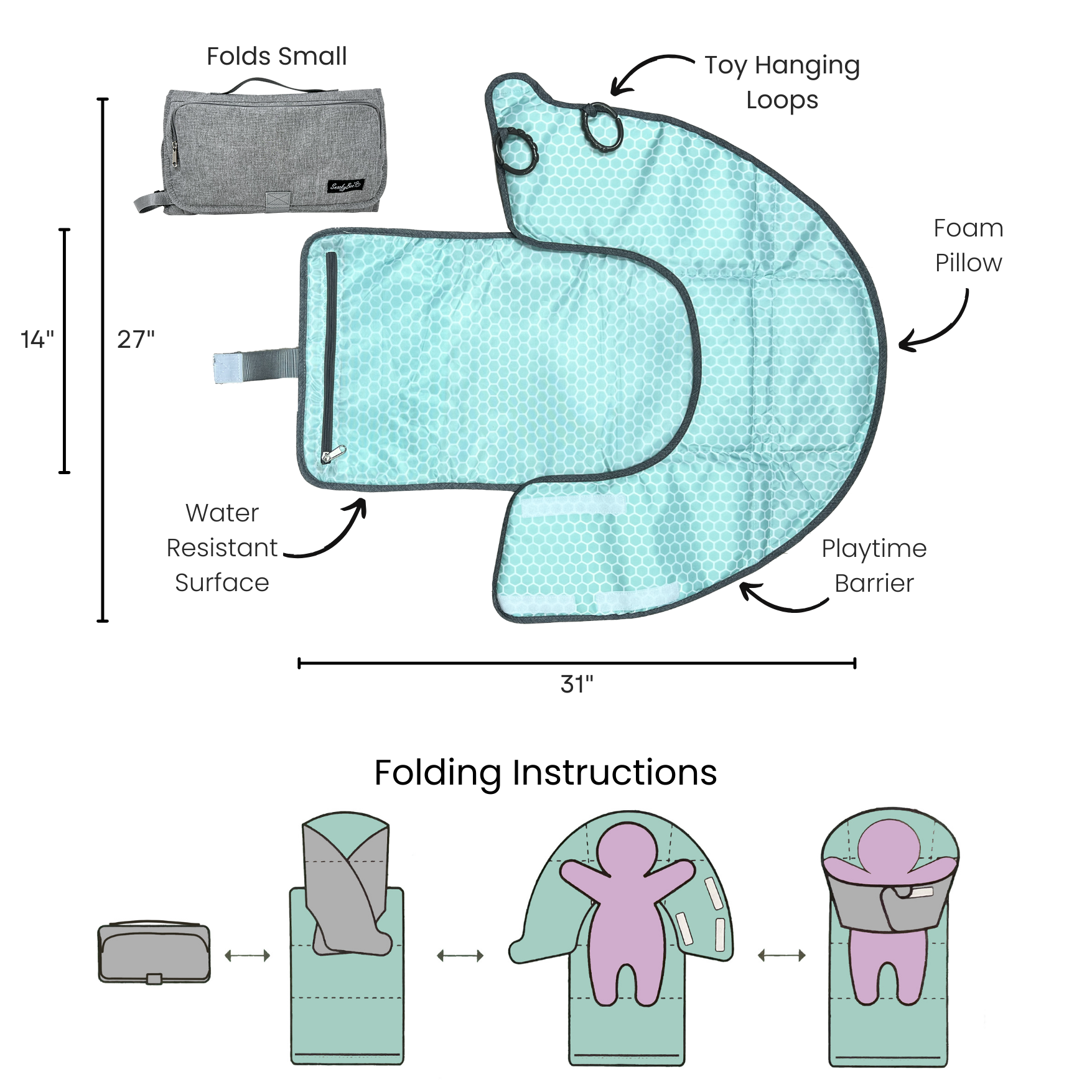 🍼 What’s included: 1 Playtime Changing Pad + 2 Toy Clips