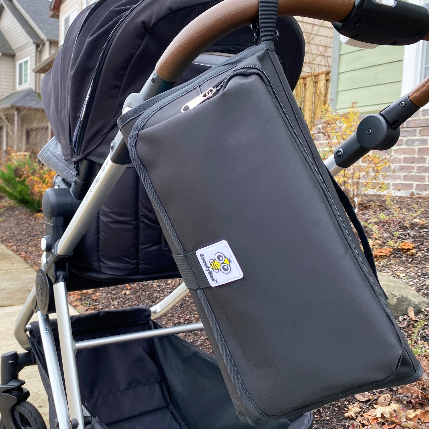 The Playtime Changing Pad can also be used as a small clutch diaper bag and changing station, and has a strap that can be attached to your wrist or stroller along with a handle on the top to grab quickly.